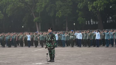 Markas Besar Tentara Nasional Indonesia (Mabes TNI) menggelar Upacara Bendera 17-an bulan November Tahun 2024, dengan Inspektur upacara Asisten Komunikasi dan Elektronika (Askomlek) Panglima TNI Marsda TNI Kustono, S.Sos., yang diikuti oleh Prajurit dan PNS TNI di lingkungan Mabes TNI, bertempat di Lapangan Gedung B3 Mabes TNI, Cilangkap, Jakarta Timur, Senin (18/11/2024).
