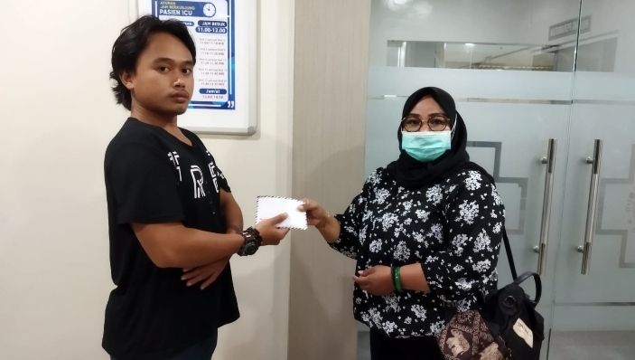 Wartawan yang kerap melakukan liputan di wilayah utara Kabupaten Bekasi di antaranya Kecamatan Babelan, Tambun Utara, Tarumajaya dan sekitarnya menyampaikan donasi berupa uang kepada keluarga Napsiah (wartawan liputan86.com) bernama Rizal (anak pertama) di Rumah Sakit (RS) Ananda Babelan, Senin (5/8/24).