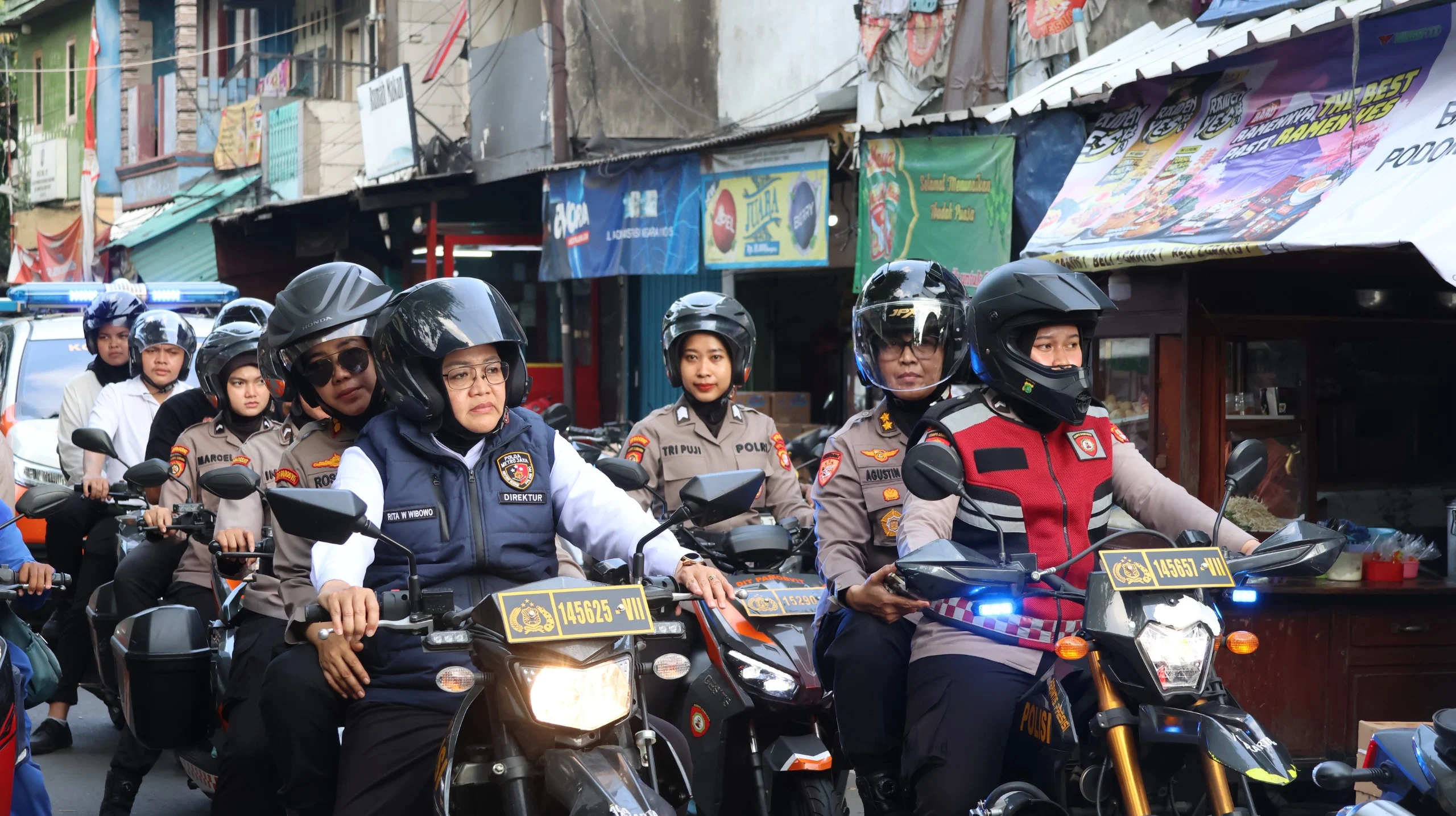 Patroli itu dipimpin langsung Dir PPA PPO dan Kapolres Metro Bekasi Kombes Pol Sumarni. Selain menyasar titik-titik rawan gangguan kamtibmas, jajaran Polwan juga membagikan sekitar 500 paket sembako kepada perempuan pekerja sektor informal, mulai dari pengemudi ojek online, petugas kebersihan, hingga pedagang kecil.