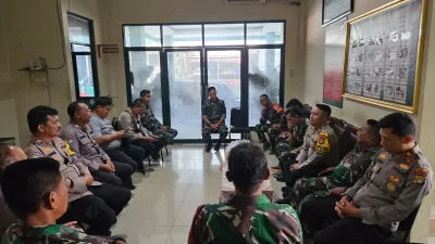 Dalam rangka memperkenalkan diri, Kapolsek Jatisampurna yang baru Iptu Didik Tri Maryanto beserta jajaran kunjungi Makoramil 02/PG Jalan Jatiwaringin, Kelurahan Jatiwaringin, Kecamatan Pondok Gede, Kota Bekasi. Kamis (5/9/2024).