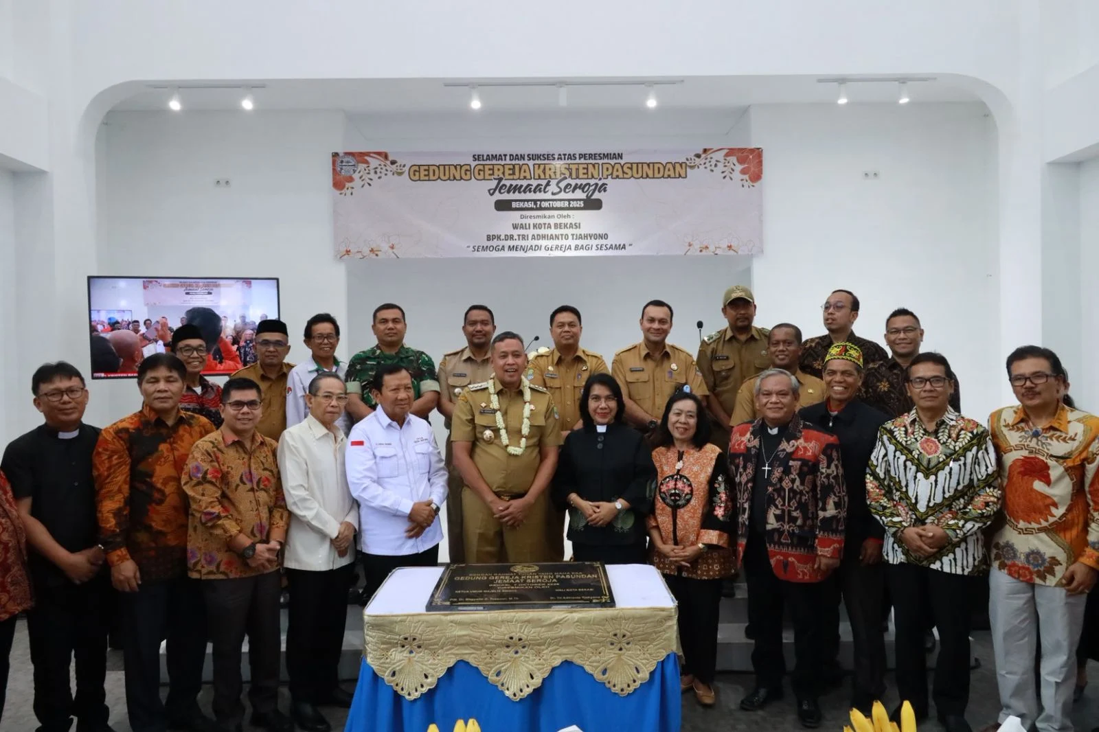 Wali Kota Bekasi, Tri Adhianto, meresmikan Gereja Kristen Pasundan (GKP) Jemaat Seroja yang berlokasi di Kelurahan Harapan Jaya, Kecamatan Bekasi Utara, pada hari ini. Peresmian tersebut menjadi simbol nyata komitmen Pemerintah Kota Bekasi dalam menjaga dan merawat keberagaman sebagai kekuatan bersama dalam membangun kota yang maju, sejahtera, dan harmonis Selasa,( 7/10/2025 ).
