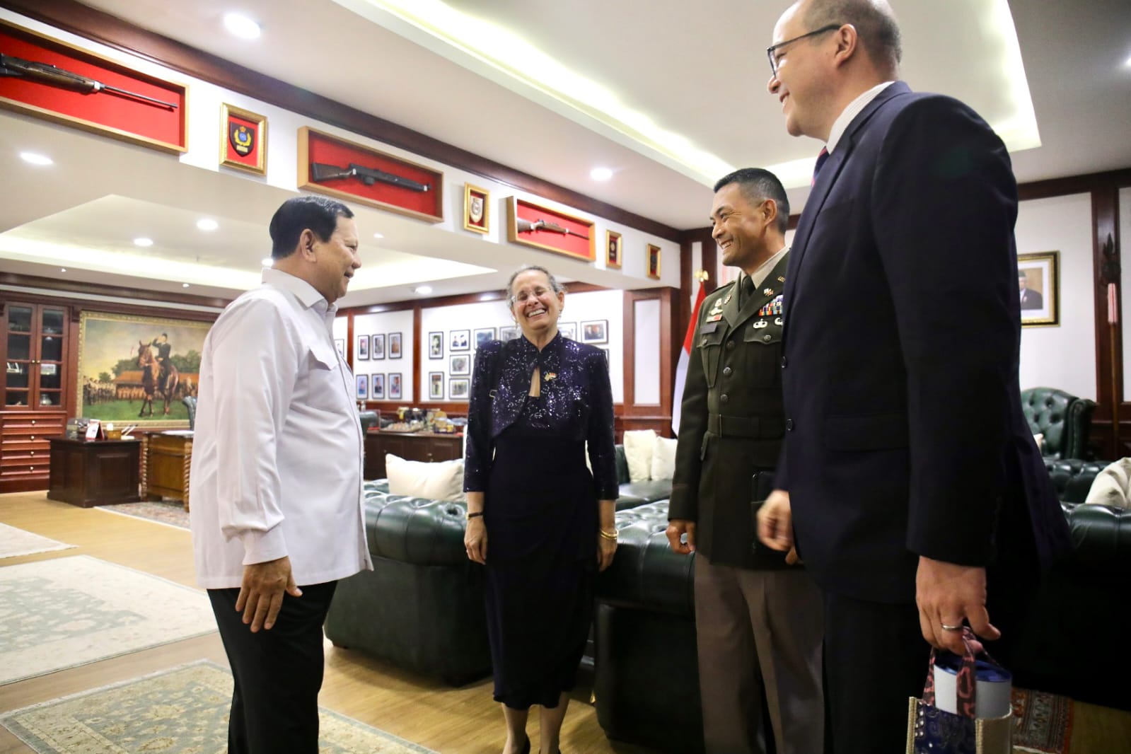 Turut mendampingi Menhan Prabowo dalam menerima kunjungan Dubes AS yaitu Asisten Khusus Menhan Bidang Manajemen Pertahanan Letjen TNI (Purn) Sjafrie Sjamsoeddin dan Plt. Karo TU dan Protokol Setjen Kemhan Mayjen TNI Rui Duarte. Sementara Dubes AS didampingi oleh Athan US Col. Jacky Ly (SDO/DATT) dan Political Counselor Mr. David Muehlke.