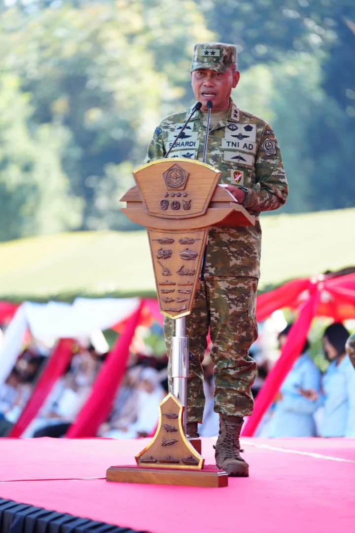 Panglima TNI Agus Subiyanto diwakilkan oleh Aster Panglima TNI Mayjen TNI Suhardi membuka secara resmi Bazar Ramadan TNI dalam rangka menyambut Hari Raya Idul Fitri 1447 Hijriah/2026 Masehi, pembukaan Bazar di tandai dengan penekanan tombol oleh Ketua Umum Dharma Pertiwi Ny. Evi Agus Subiyanto, bertempat di Lapangan GOR A. Yani Mabes TNI, Cilangkap, Jakarta Timur, Jumat (13/3/2026).