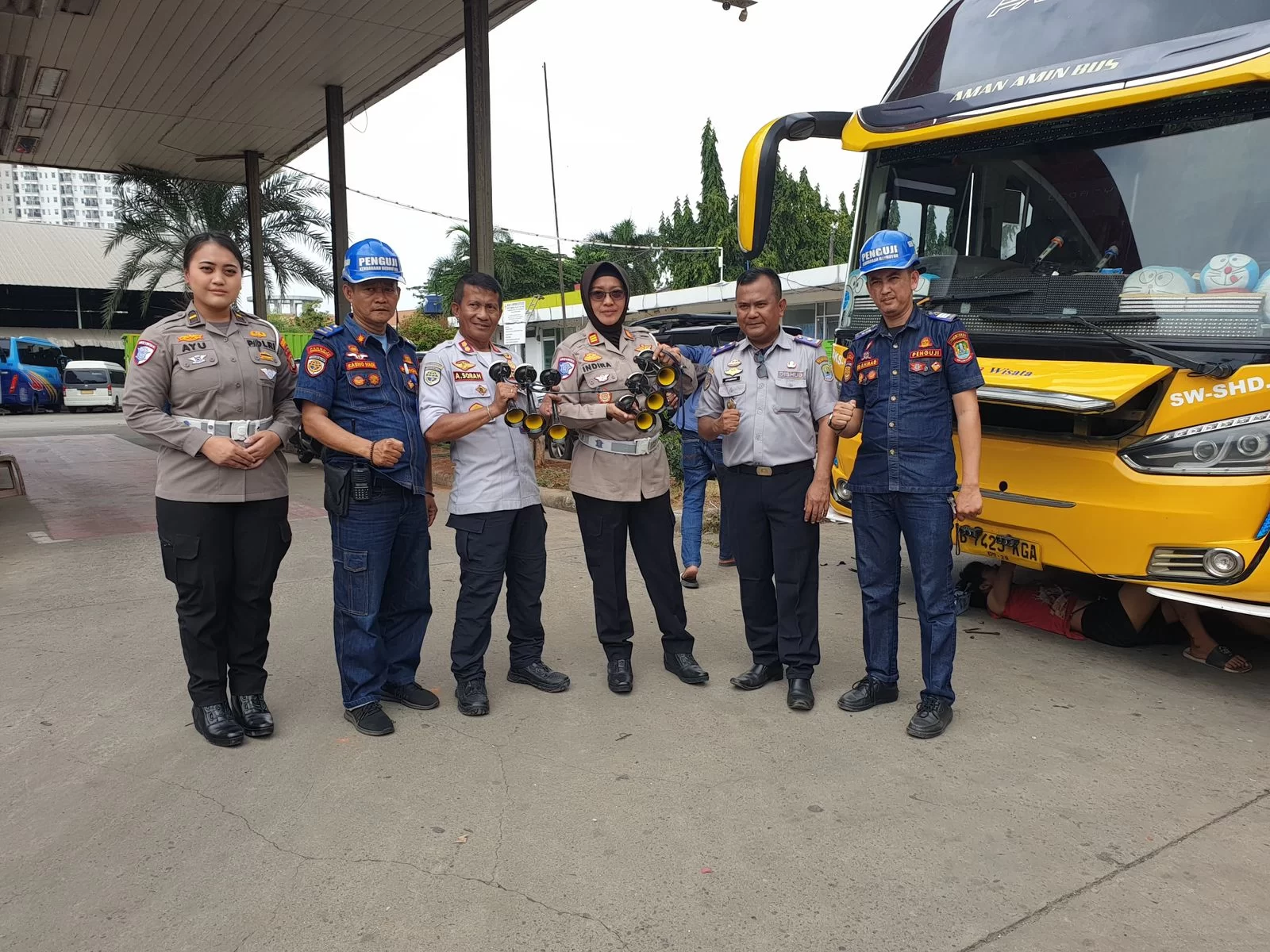 Kegiatan yang dimulai pukul 11.00 WIB ini dipimpin oleh Kanit Kamsel AKP Sri Indira P, S.Sos., MM, dan melibatkan sejumlah petugas Satlantas, termasuk Ipda Habib Lutfi S., SH, Ipda Rinda Ayu, S.Kom, AIPDA Rudiono, dan Aipda Heri Firmansyah, SH. Tim mendampingi penguji dari Dishub untuk melakukan pengecekan bus dan mencopot klakson “telolet” yang tidak sesuai aturan.