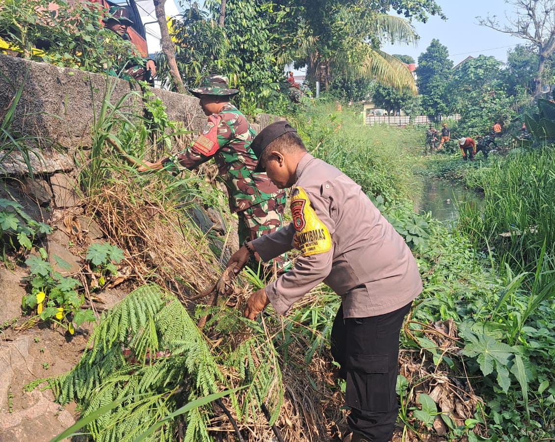 Guyub dan kompak Babinsa Koramil 03/Teluk Pucung Kodim 0507/Bekasi bersama Bhabinkamtibmas dan juga masyarakat melaksanakan kerja bakti membersihkan Kali Rawalumbu di Jl. Meranti Raya Rw 11 Kelurahan Bojong Menteng Kecamatan Rawalumbu Kota Bekasi. Pada Selasa (22/7) yang lalu.