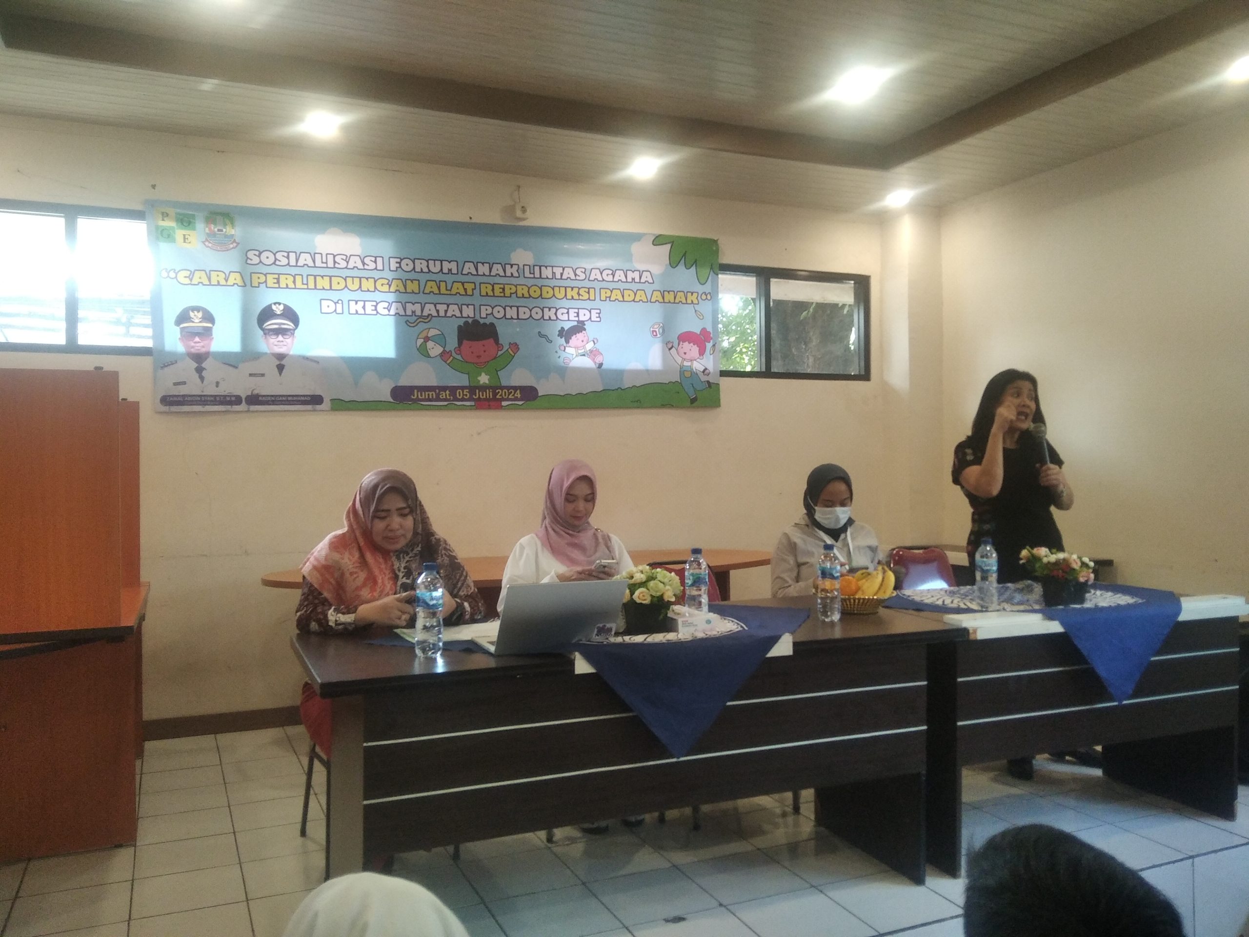Kecamatan Pondok Gede mengadakan kegiatan sosialisasi untuk anak yang diselenggarakan di aula Kecamatan Pondok Gede Kota Bekasi dalam acara tersebut mendatangkan narasumber dari RSUD Pondok Gede diantaranya sebagai narasumber dr.Fanie Indriani , drg. Maria Devita Sari, Kasie Yanmed dari RSUD Pondok Gede, Indah Indri Hapsari.SH.MSi Kasie Kesos Kecamatan Pondok Gede, Guru dan Murid dari sekolah wilayah Pondok Gede, untuk Tema : Cara Perlindungan Alat Reproduksi Pada Anak ” Jum’at, ( 05/07/2024 )