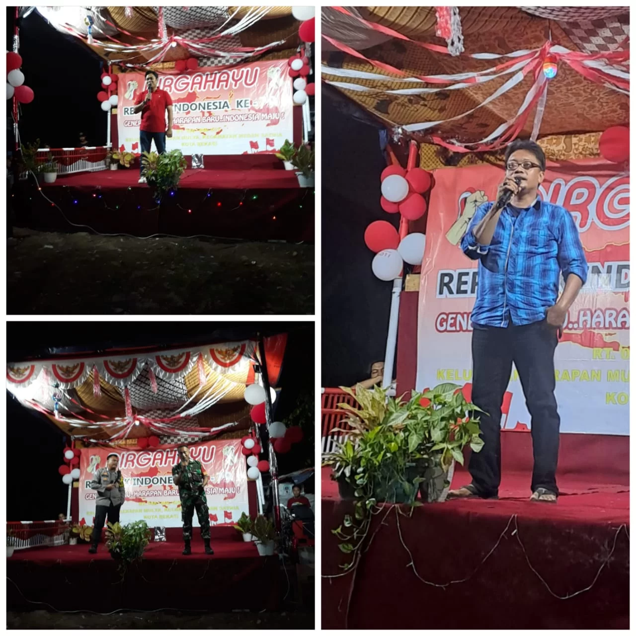 Dengan penuh semangat dan antusias warga RT.006/RW.01 Kelurahan Harapan Mulya, Kecamatan Medan Satria Kota Bekasi menggelar acara hiburan pentas seni dalam rangka memeriahkan HUT RI Ke-79 dan sekaligus pembagian hadiah perlombaan, tari-tarian dan hiburan lainnya,, acara yang diadakan di lapangan RT.006 yang di hadiri Lurah Harapan Mulya Agung beserta jajaran nya , Bimaspol Yophi, Babinsa Susilo, Ketua RT. 006/RW.01 Tokoh masyarakat Ustadz Zahrudin, H. Amin dan warga RT.006 Sabtu, ( 24/08/2024 )