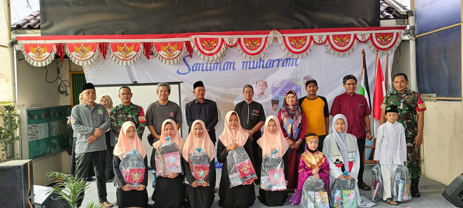 Personil Babinsa Kelurahan Bintara Jaya Koramil 01/Kranji Kodim 0507/Bekasi, Serka Maryanto Dan Sertu Merdy Cahyadi menghadiri kegiatan pemberian santunan kepada anak 50 yatim Piatu yang diselenggarakan Yayasan Cahaya Alam bertempat di Halaman Yayasan Cahaya Alam, Jalan Bintara Jaya No 3 Rt.008/10, Kelurahan Bintara Jaya, Kecamatan Bekasi Barat. Minggu (28/7/2024).